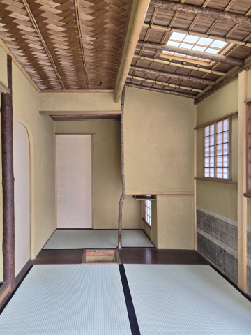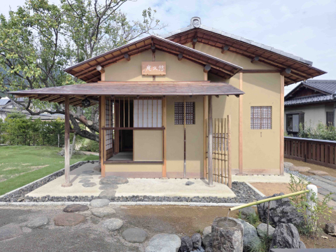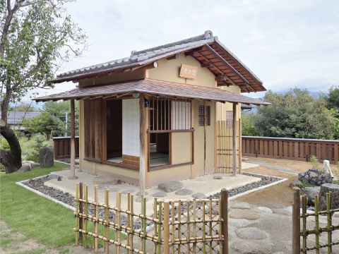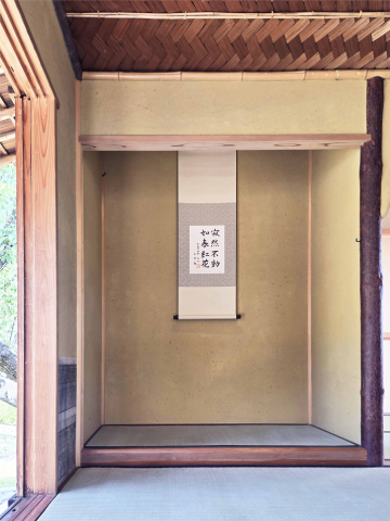 即翁新座敷の増築棟の東側に並ぶ四畳半のお茶室。有名な数寄屋大工・北村捨次郎の作品である、京都北村美術館の茶室「四君子の苑」の写しを韮崎市内の根津家に再現したもので、大村智博士が即翁新座敷の隣に移築復元し市に寄贈、悠久庵(ゆうきゅうあん)と命名されました。