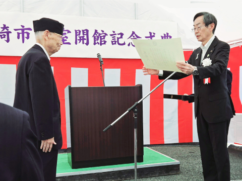 内藤韮崎市長より大村博士に感謝状が贈呈される