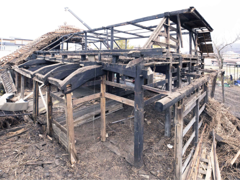 兜造り民家の生し取り解体工事の様子
