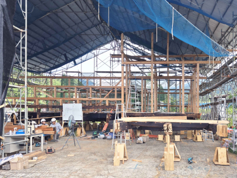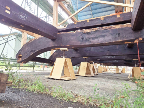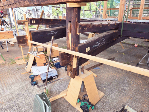 古材を生かした新しい家の骨組みが完成