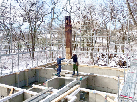 軽井沢の家 最初に大黒柱を建てる