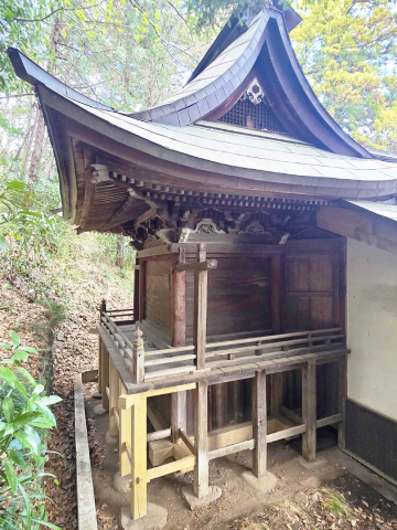 背後の山の最上部に鎮座する本殿